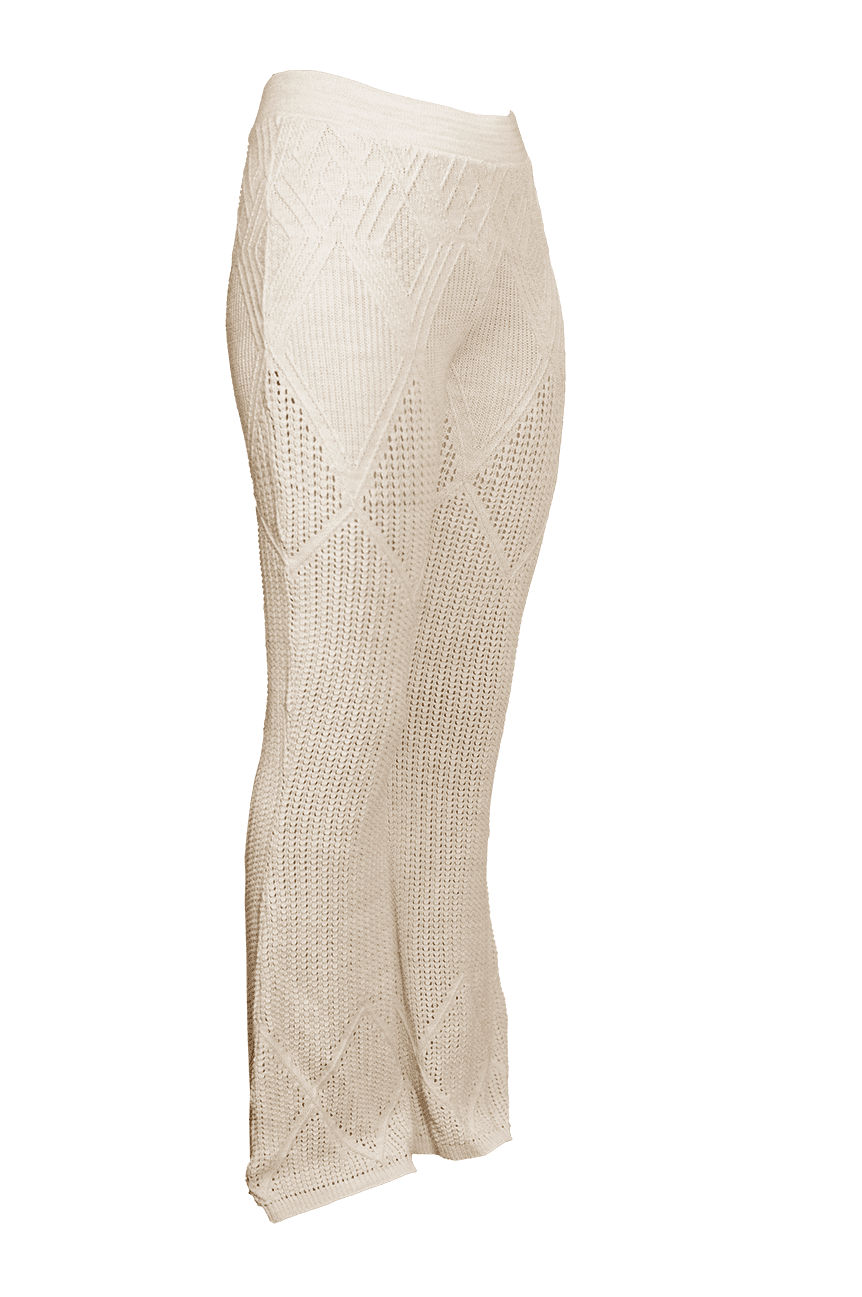 Ivory Women’s Knit Pants Elegant, Comfortable & Versatile. Flatter your figure with these ivory knit pants for women, featuring a fluid silhouette and subtly flared hems for effortless sophistication. Crafted from soft braided yarn, they offer comfort, elegance, and versatility. A timeless piece for any season.