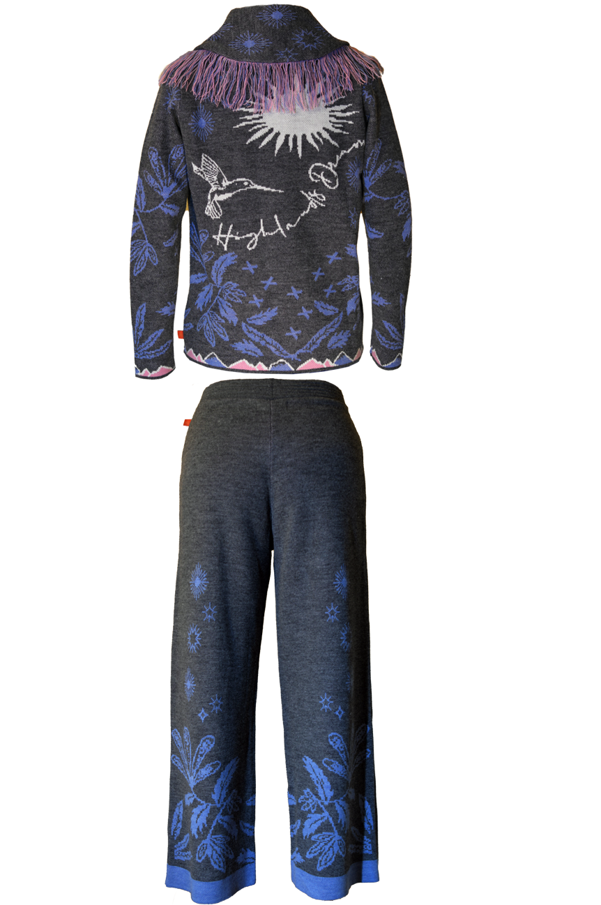 Grey Knitted Cardigan & Pants Set for Women. A timeless grey knit set crafted from high-quality, responsibly sourced yarns, blending elegance, comfort, and exclusive design. The button front cardigan offers versatile styling, while the fluid pants with an elastic waistband ensure all day ease perfect for refined casual looks or special outfits.